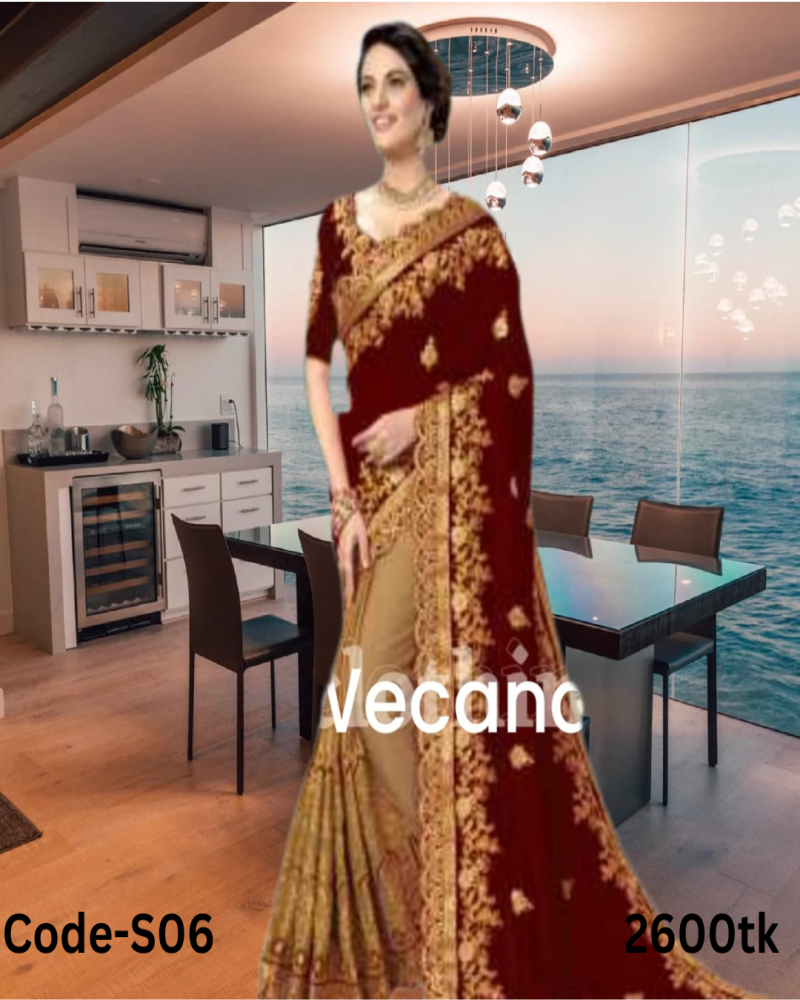 অরজিনাল ওয়েট লেস জর্জেট শাড়ি ফুল এমব্রয়ডারি কাজ করা এবং ব্লাউজ পিস সহ l